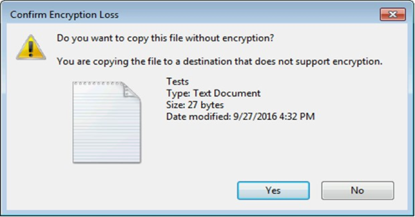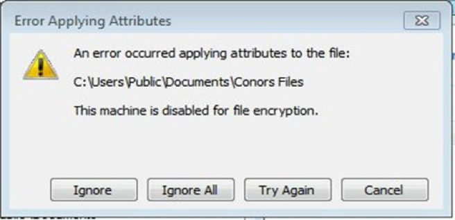 Below are a few examples some of the error messages you may get, when trying to use encrypted files or folders on your computer.