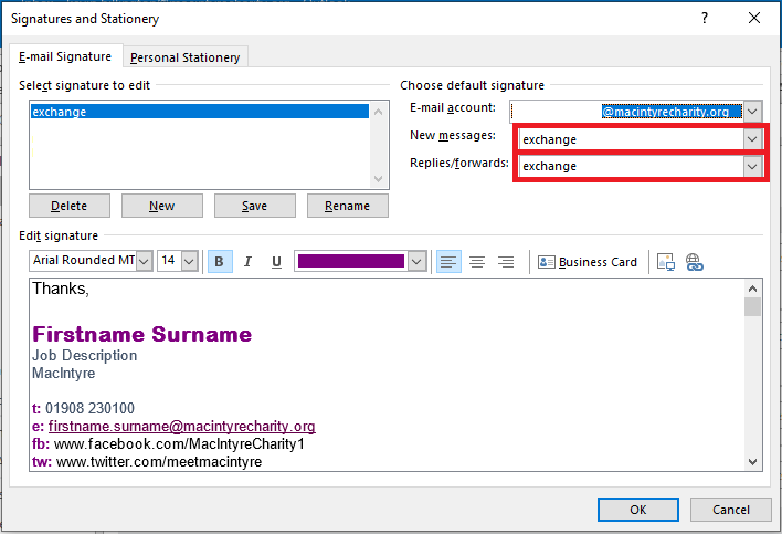 You may need to scroll down the signature to make all the changes10. Make sure your signature is selected for all new messages and replies/forwards by selecting it from the drop down menus
