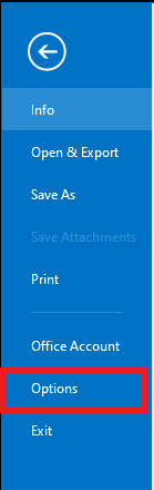 4. Click FILE in the top left corner of Outlook, then click OPTIONS
