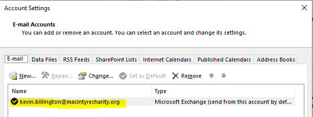 When you're given access to another email account within MacIntyre and the email account doesn't automatically appear in Outlook, follow the below instructions to manually add it.