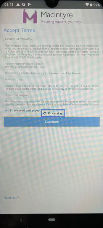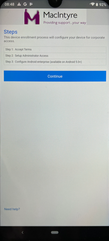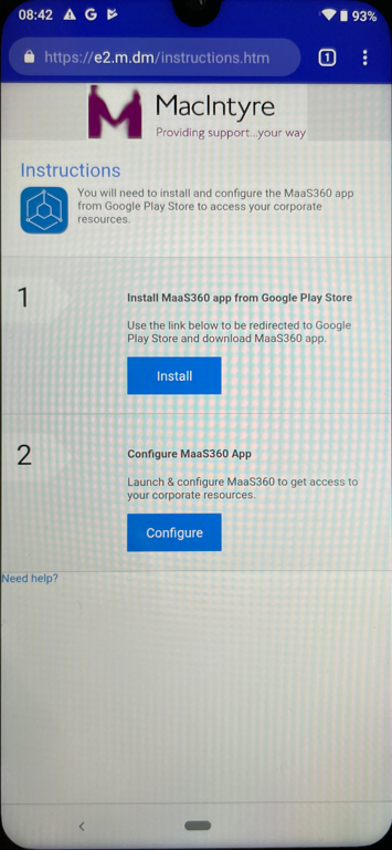 "I have just installed the MaaS360 app on my MacIntyre smart phone.