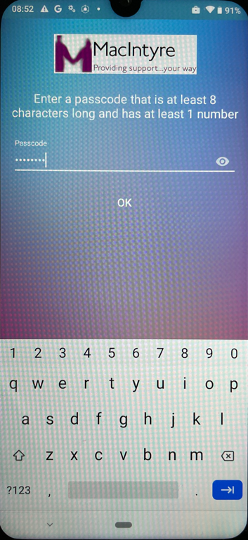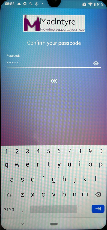 The MaaS360 requires a separate passcode to be able to access MacIntyre email, calendars, etc… Enter the passcode you want to access MaaS360 with.