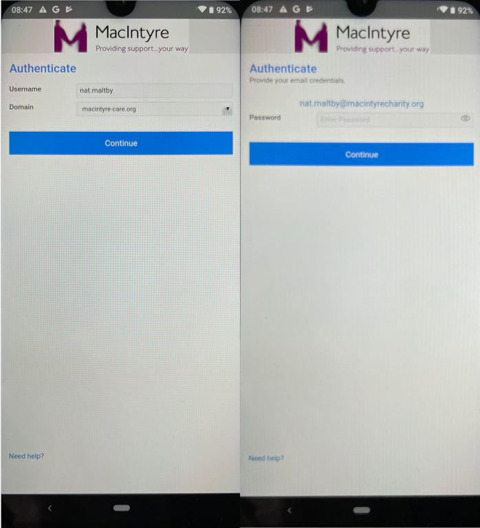 Enter your MacIntyre email username (without @macintyrecharity.org); if it isn't already filled in; and password