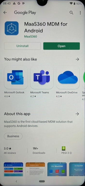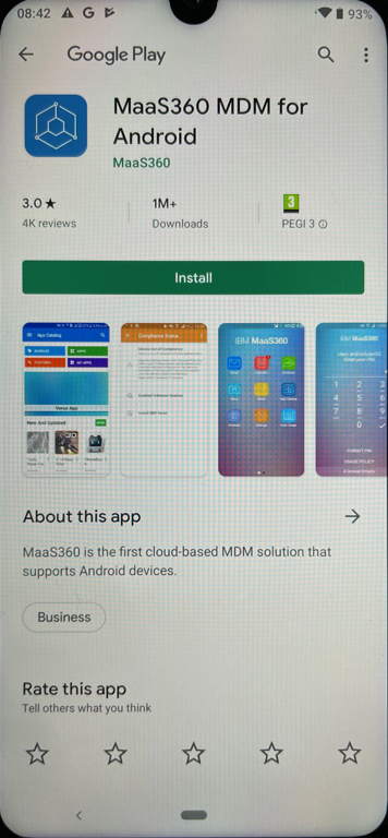 This will open the Play Store for the 'MaaS360 MDM for Android' app