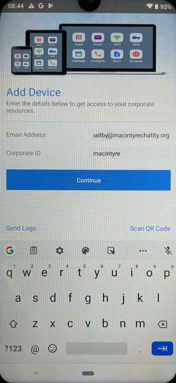 This MaaS360 app should open with your email address and Corporate ID pre-filled in, if so tap 'Continue'