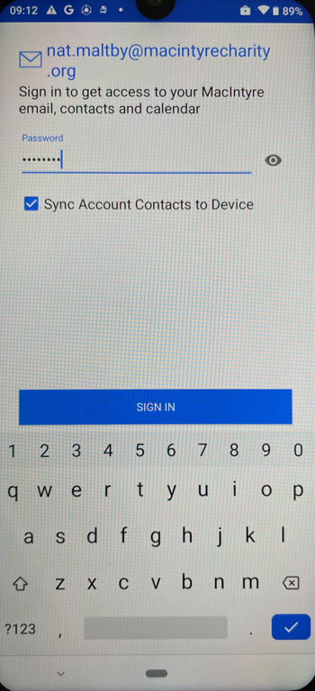 Enter your MacIntyre email password, then tap 'SIGN IN'