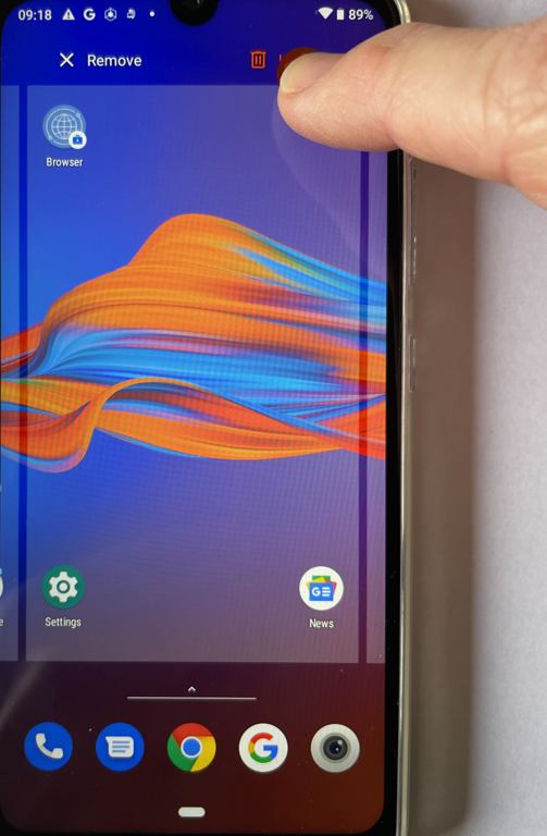 Tap and hold on the MaaS360 app (it should not have a padlock icon on it), drag it unto ‘Uninstall’.
