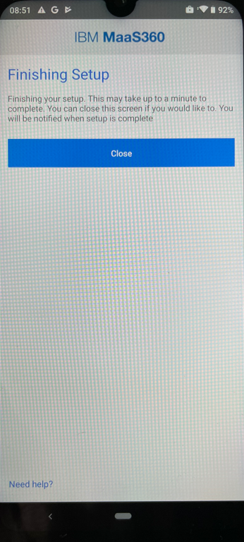 This will uninstall the initial MaaS360 app from the phone, which is no longer required.