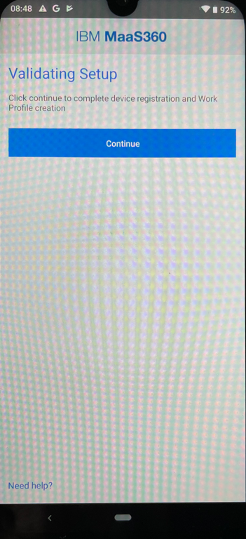 If you leave the phone alone for a while, MaaS360 will load automatically and you proceed to the next step.