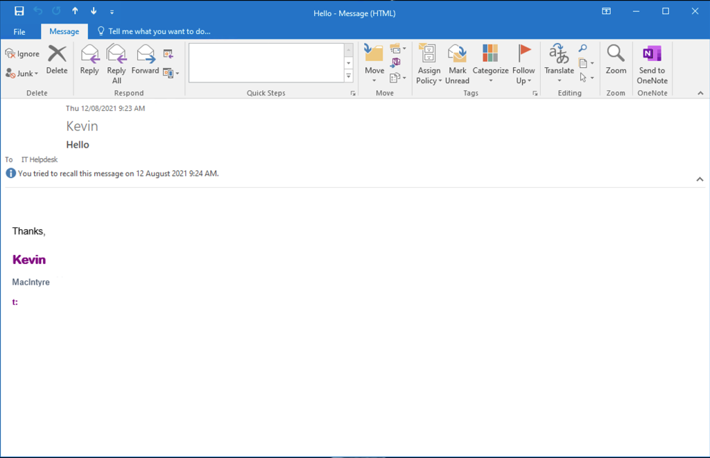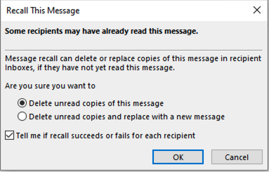 Recalling an email is not guaranteed. If the recipient has already opened the email, the recall will fail to recall. If the recipient chooses to ignore the recall request, the recall will fail to recall.Open
