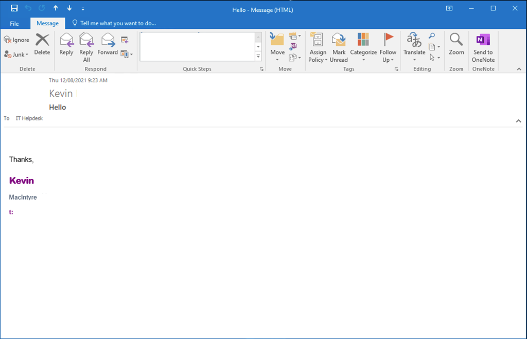 If you have a small email window open, ‘Actions’ may just be an icon of a list in front of an email; see the image on the right as an example
