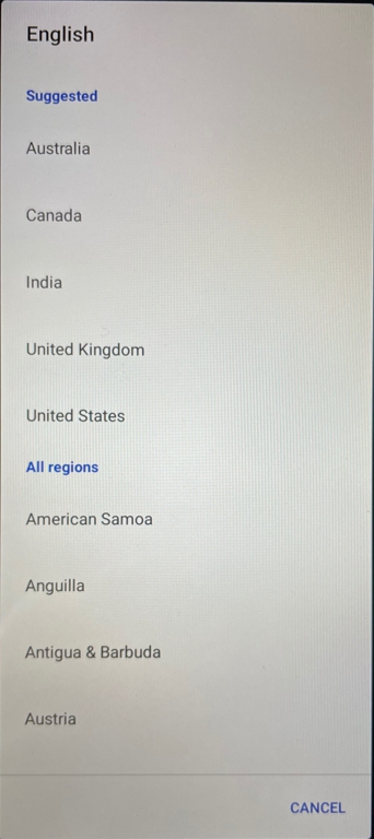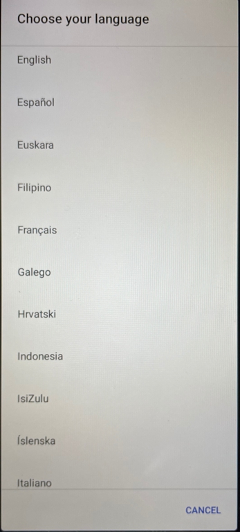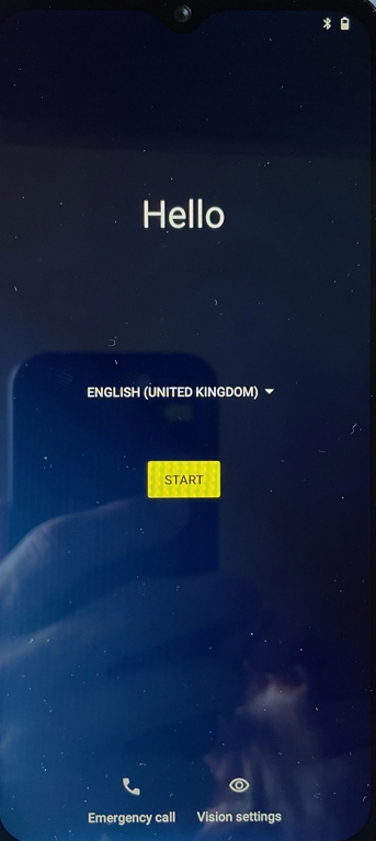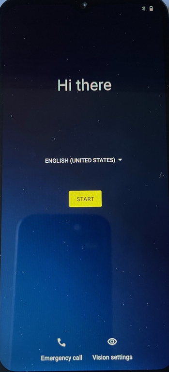 Once the phone has started up, on the 'Hi there' screen, tap 'ENGLISH (UNITED STATES)' to change the language.