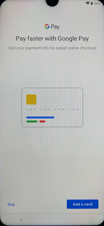 As this is a MacIntyre owned device, personal debit/credit cards should not be added to Google Pay