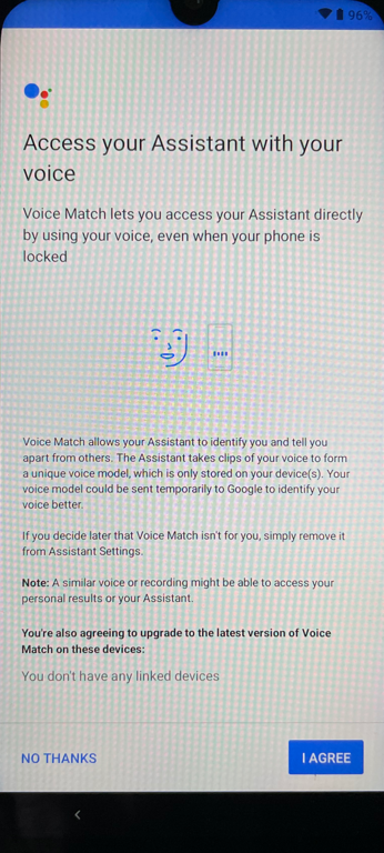 If you do want to use your voice for the Google Assistant, tap ‘I AGREE’ and follow the prompts for the phone to recognise your voice