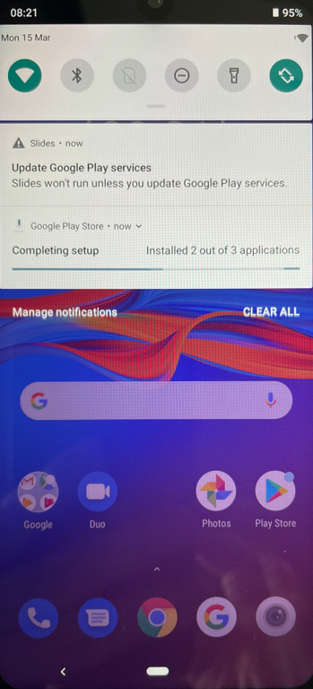 The initial phone is now done, but the device will need to have any pending updates installed.