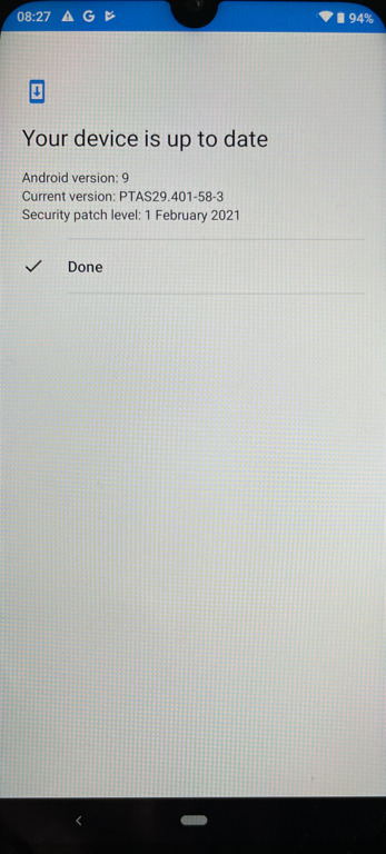 The device will install the update and reboot. Once you have unlocked it, repeat steps 'Update' to 'Done' above and install all pending updates until it states ‘Your device is up to date’.