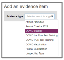 - Click on 'Add evidence item' button (located on the right of the screen)