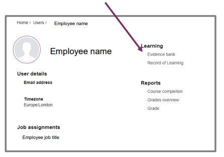 The 'Evidence bank' is where we record any learning or requirement that the employee has completed that isn't available via the eLearning system.