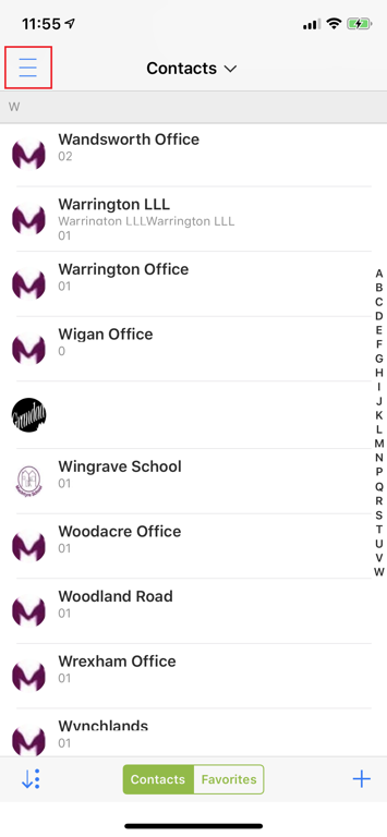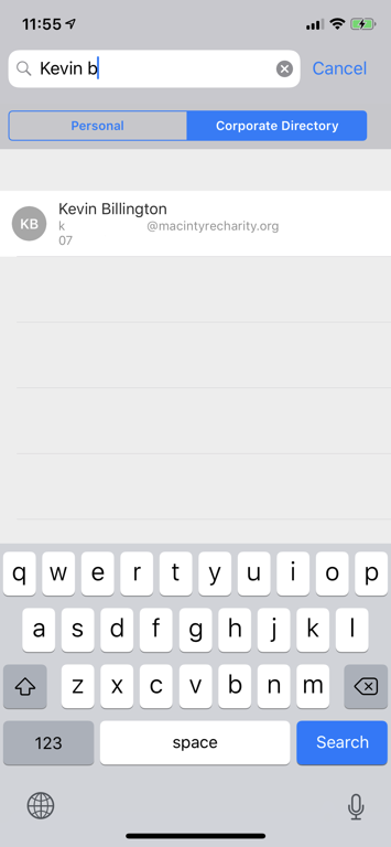 If you need to find particular contact details, tap 'Personal and Corporate Contacts' above the contacts list where you can search for them. Initially it will search contacts in your account, but tap on 'Corporate Directory' and it will search the MacIntyre Global Address List instead.