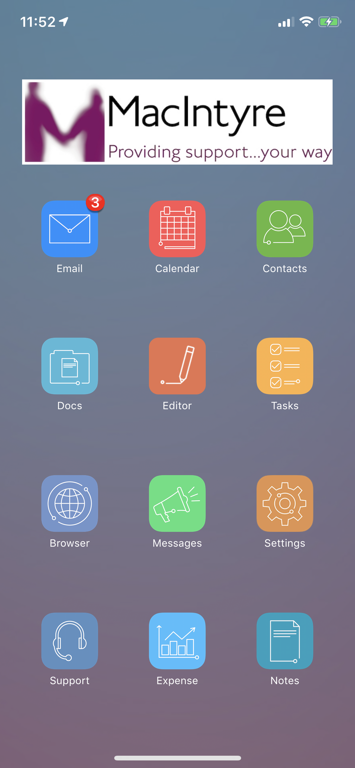 When you first login to MaaS360, you will see the apps needed to access MacIntyre emails, calendar, contacts, etc…